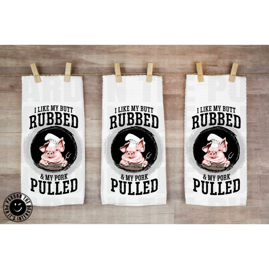 I Like My Butt Rubbed and My Pork Pulled Tea Towel